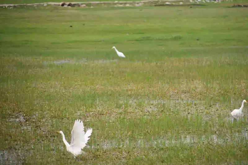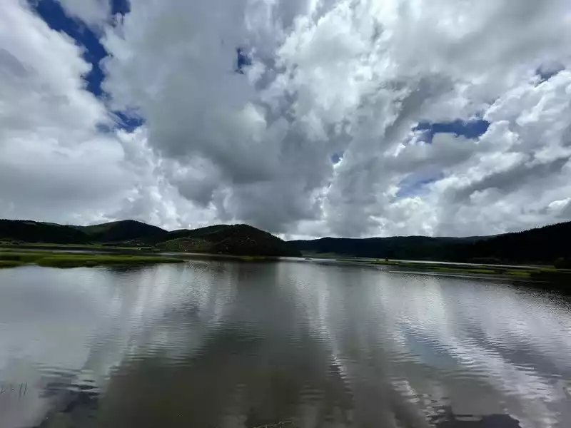 Napahai is right on the edge of Shangri-La. We slowed down along the lakeside and watched herds of cattle and horses grazing leisurely. We parked and ventured into the grasslands for a close encounter with the cattle. We watched the horsemen race horses, and if we're interested, we can go horseback riding ourselves. There are many racetracks nearby. We arrived at the wetland and admired the stunning scenery of the water merging into the sky and the waterfowl flying and frolicking freely. We took photos and relaxed as we walked. After about two hours of fun, we had dinner at Yanyu Food City near the East Gate of the Ancient City. This restaurant, located near the East Gate Archway, primarily caters to locals. The yak beef hotpot and barbecue here are excellent and reasonably priced. The owner, a local man born in the 1980s, is warm and hospitable. I particularly like Cantonese songs. During our meal, we listened to all of Principal Tan’s classic Cantonese songs. The next night, we also had dinner here before going to the airport.