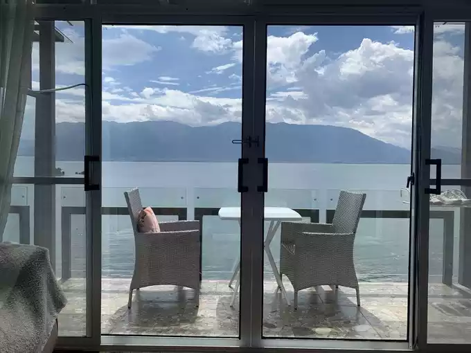 Since I had watched the sunrise at Erhai Lake, I chose to sleep in until I woke up naturally. Wake up, open the curtains and see such a blue sky, so I quickly go out to admire this painting again.