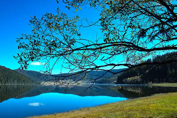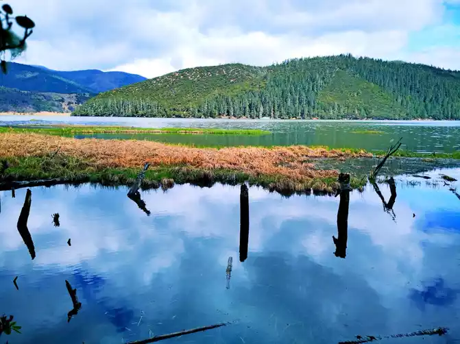Another half hour to Tiger Leaping Gorge. Tiger Leaping Gorge, located in Tiger Leaping Gorge Town, Shangri-La City, is divided into three sections: Upper Tiger Leaping, Middle Tiger Leaping, and Lower Tiger Leaping. The winding road stretches 25 kilometers. Flanked by Jade Dragon Snow Mountain to the east and Haba Snow Mountain to the west, the gorge boasts a vertical drop of over 3,900 meters, making it one of the deepest canyons in the world. I only saw the Upper Tiger Leaping Gorge. From the Tiger Leaping Gorge Visitor Center parking lot, descending to the Jinsha River, the previously wide channel narrows to about 30 meters. The unruly Jinsha River had no room for such a stranglehold, suddenly erupting in fury, its torrents surging and its roar deafening. A reef in the middle of the river, like a thorn in its throat, crashed against it, sending the previously turbulent water soaring several meters into the air, creating a breathtaking spectacle. Legend has it that someone saw a tiger leap from the opposite bank onto the reef in the middle of the river, then leap back across. Hence the name "Tiger Leaping Gorge." Yao Maoshu, a late resident of Leshan, was known as the "First Yangtze River Rafting Man." He rafted approximately 1,270 kilometers along the Jinsha River before perishing in Tiger Leaping Gorge on July 24, 1985, ultimately failing to fulfill his long-cherished dream of rafting down the Yangtze. It's said he waited for days in Shigu Town before finally losing patience and taking the plunge, leading to this tragic event. Viewing Tiger Leaping Gorge today, I can't help but sigh in regret at the insignificance of humanity in the face of nature. Across the gorge, a path meanders along the mountainside; this is the ancient Tea-Horse Road. Looking up, I see steep mountains, jagged boulders, towering into the clouds. Amidst the mist, a mysterious, conical snow-capped peak looms and emerges: Haba Snow Mountain. As the saying goes, "A mountain looks different from the side, a peak from the front; different heights and distances." Tiger Leaping Gorge in Haba Snow Mountain is steep on one side but gently sloping on the other, making it a great place for beginner climbers to practice. Driving through the canyon, the mountains are high and the valleys are narrow, with rocks occasionally rolling down and piling up on the roadside, a truly eerie sight. In the early 20th century, American explorer Joseph Rock conducted an in-depth survey of the Hengduan Mountains in southwest China. He was struck by the snow-capped mountains, forests, grasslands, lakes, rivers, pastures, and local customs. He published his articles and photographs in National Geographic magazine, calling this region "Shambhala," a Buddhist Pure Land. In 1933, James Hilton, drawing on Locke's description, first described "Shangri-La," a place of eternal peace and tranquility nestled among the towering mountains of the East, in his novel "Lost Horizon." During World War II, people trapped in the war yearned for a peaceful and tranquil life, longing for a world like "Shangri-La," and the legend of "Shangri-La" spread throughout the world. Yunnan's Diqing Prefecture, fueled by the rapid development of its tourism industry, announced that they had found Hilton's "Shangri-La," which is now Diqing Prefecture. In 2001, Diqing Prefecture was renamed Shangri-La City, and its fame has since soared. Lhasong Tseling Monastery, located not far from the city, is the largest Tibetan Buddhist temple complex in Yunnan and the center of the Yellow Sect in the Sichuan-Yunnan region. Built into the mountainside, the temple resembles an ancient castle and embodies the epitome of Tibetan plastic arts, earning it the nickname "Tibetan Art Museum." Pudacuo National Forest Park is Shangri-La City's most iconic attraction. At 6 a.m., in the dark and freezing cold, we boarded a tour bus to the Pudacuo Visitor Center. We stopped at a clothing rental shop along the way before continuing on our journey. As daylight gradually brightened, the grasslands along the road were dotted with beautiful Tibetan dwellings. Cattle and sheep were still in their pens, and the green grass was shrouded in a hazy mist. From the Pudacuo Visitor Center, we took a convenient shuttle bus, with stops along the way. Our first stop was Shudu Lake. Located at an altitude of 3,705 meters and containing 15 square kilometers of water, Shudu Lake is vast, surrounded by towering mountains, and its waters are deep blue and pure. A solid wood walking path has been constructed along the lake, providing a comfortable footpath. Strolling along the lakeside, we were greeted by the gentle breeze, the sight of squirrels flitting across the water, the sight of parasol mushrooms, the sight of forests, grasslands, and the occasional encounter with azaleas...it was a dazzling journey filled with surprises. The towering, verdant alpine pines and wildflower-filled mountain meadows complement the cool, expansive Shudu Lake. Mountain birds chirp sweetly, and white and brown horses graze leisurely on the lakeside meadows. Nature has orchestrated such a perfect match, a miracle. At 3,705 meters, walking along the lakeside, I experienced no altitude sickness or shortness of breath, but instead felt refreshed, as if brimming with oxygen and energy. Is it really 3,705 meters? To this day, I still doubt it. I can't quite recall where our second stop was; I missed Bita Lake. We returned to the visitor center around noon, enjoying the alpine meadow scenery along the way. For someone experiencing this kind of scenery for the first time, I was overwhelmed with joy and didn't want to leave. Unfortunately, I had to turn back.