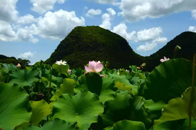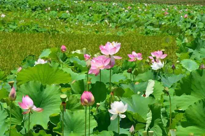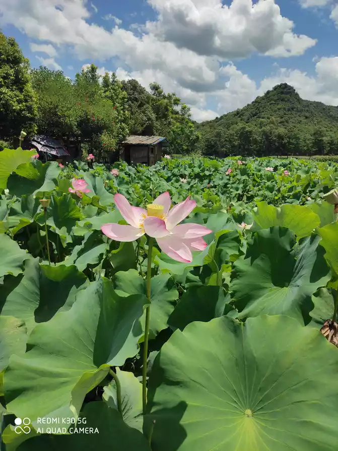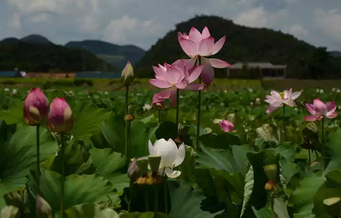 Across from Hundred Flower Valley is a private lotus pond. The caretaker wasn't there, and the lotus flowers were in full bloom. I took some photos. The entrance fee is 30 yuan, but we saved that and got to take photos of the lotus flowers we'd been dreaming of!