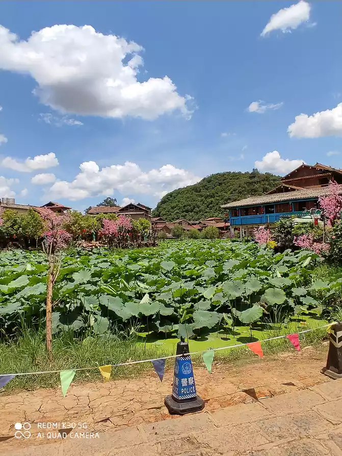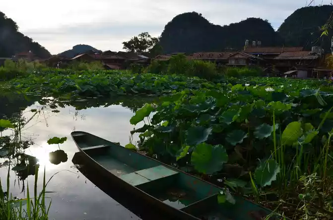 Around 5 pm, I took a good look around Xianren Cave Village. It's also a leisure place. Its beauty lies in its quietness and elegance. Because of the lotus, the village is clean, with only the blue sky and green leaves to complement it. I was actually hungry, so the owner recommended the spicy lotus fish, a local specialty. The fish was fresh, tender, and rich (I almost swallowed my saliva just thinking about it). I highly recommend it. The lotus leaf omelet (the lotus leaf was tender, and the egg was fragrant) was the real Puzhehei experience. By the time we finished eating, it was already late. The plank road was bathed in the sunset glow. Isn't it this beautiful every day? It was a quiet, dreamless night. We had agreed to take photos of the rosy clouds at 7am, but since we woke up late, we decided to take photos of the morning light. A beautiful village.