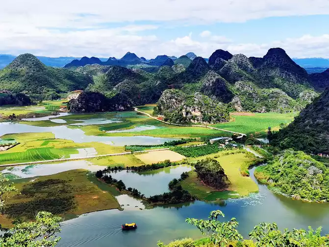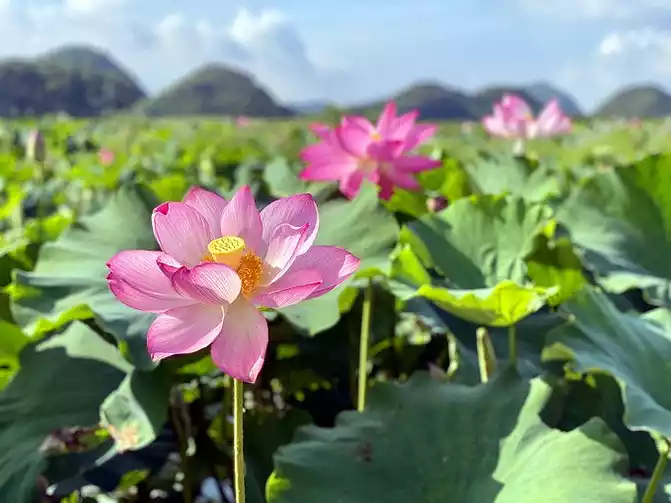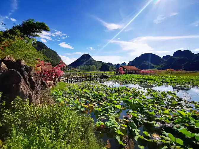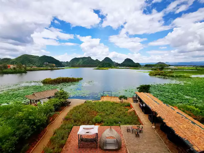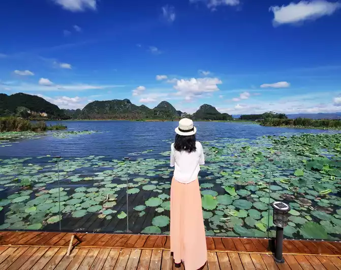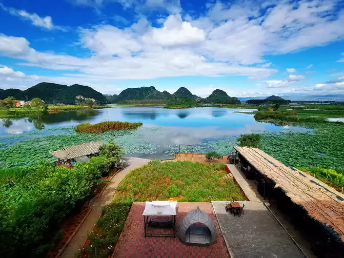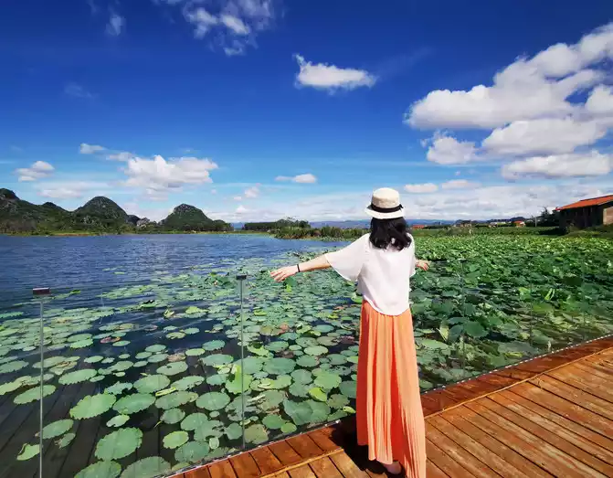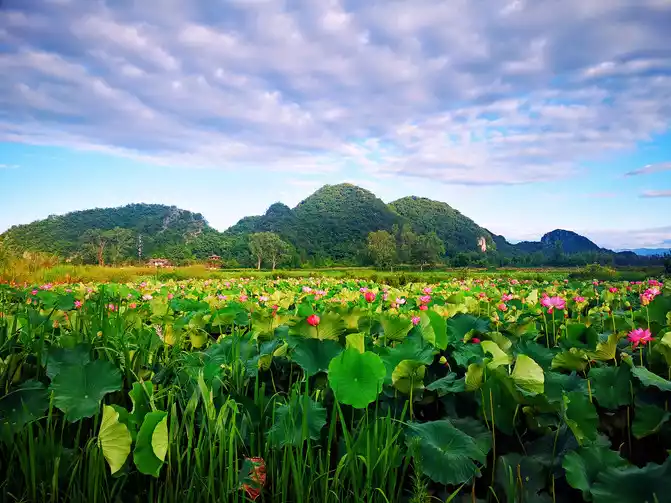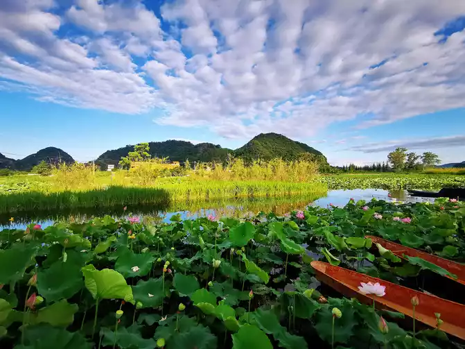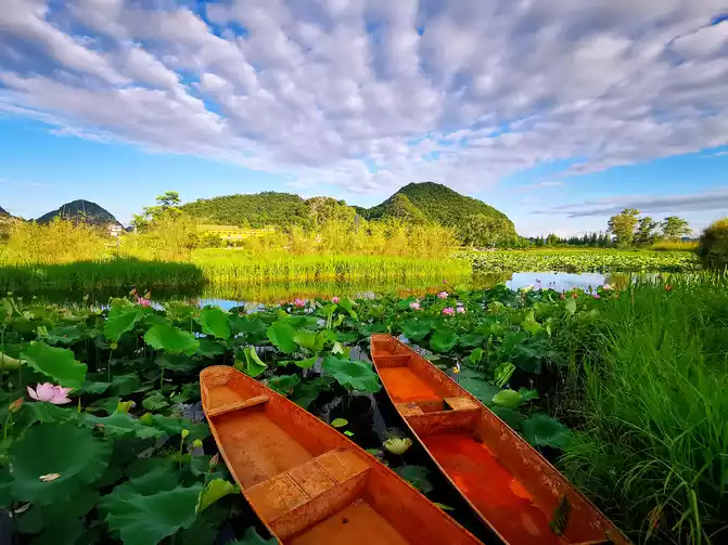 Puzhehei, which means "a pond full of fish and shrimps" in Yi language, is the golden season for tourism in Puzhehei from late June to September. It enters its flowering period in mid-May every year and the flowering period is extremely long, lasting until the end of September. There are more than 270 kinds of world-famous lotus flowers growing here, with a total area of more than 20,000 acres, which is approximately equivalent to the area of three small countries, the Vatican. It is known as the largest lotus garden in the world. It is said that rare twin lotus flowers have bloomed here (borrowed picture).