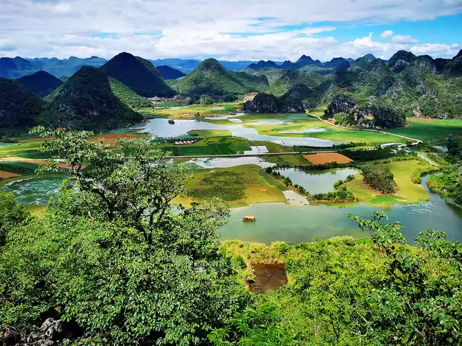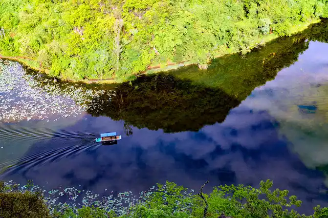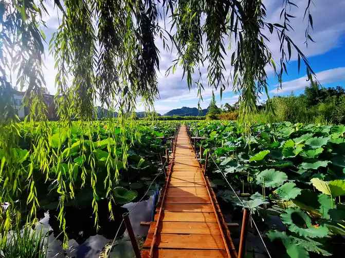 D3-6.17: Admire lotus flowers in Wanli Lotus Pond, climb Qinglong Mountain to overlook the panoramic view of Puzhehei, watch willow leaf boats fighting on the water, and taste local food