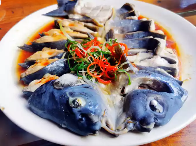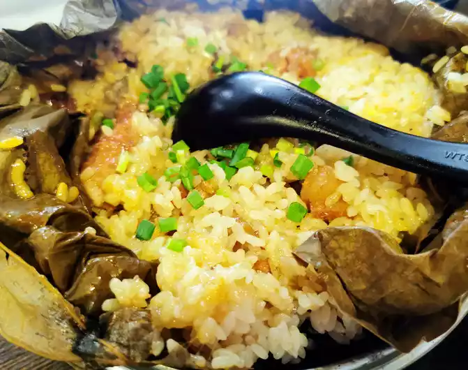 Bearing the scorching sun, we went to the nearby Xiayu Lake to try the special lotus seed and soy milk chicken. The pot base is made with fresh soy milk and lotus seeds, and the local chicken is stewed. After boiling, a layer of tender tofu pudding is formed on the surface. The soup is thick and the meat is tender. It just doesn’t look very good. It is very fresh and sweet when paired with local vegetables. Peach blossom wine and lotus wine are both particularly delicious. The five-color glutinous rice has a firm and fragrant texture, accompanied by a faint bamboo tube aroma, symbolizing that people of all ethnic groups are united like glutinous rice balls, and life is as brilliant as a hundred flowers. The store also thoughtfully gave away their own lotus root powder and egg yolk cakes for tasting. They tasted very good and you can buy some to take home as souvenirs.
