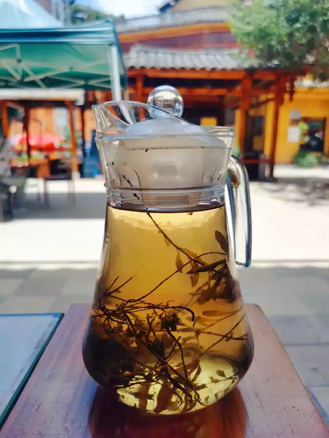 Before leaving, ride a scooter and cross the Puxin Bridge to eat lotus fish at Xiayu Luxuan in Puzhehei. The flesh of the lotus fish is tender and smooth, sweet and delicious, and the shape is beautiful. The leek and snail meat is rare. There was more meat than vegetables, and the snail meat was big and plump, with no muddy smell, and the leeks were also very fresh. The pine hair tea in the store was very similar to yesterday's phoenix tail tea. It was a refreshing drink to relieve the heat in the summer, so LG couldn't help but buy some to take back. We returned to the inn and said goodbye to the housekeeper, but found that Didi could not be called. Fortunately, the housekeeper helped find a familiar charter driver to take us to the station, so we did not miss the high-speed train back to Kunming.