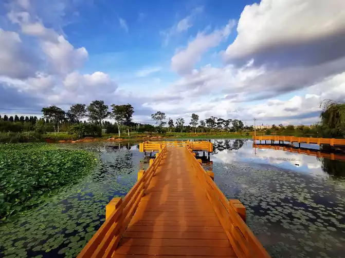 Beautiful things are worth waiting for, just like the sunset in Wangguan Wetland Park. Some people set up their cameras early, just waiting for this moment to come. The afterglow of the setting sun shines on the water, and the undulating waves are all golden. The sky and the earth seem to be dyed, shrouded in an orange halo. When the sun gradually disappears in the embrace of the western mountains, the color of the sky becomes particularly charming, and the warm and cool tones blend together, showing the charm of the sunset to the fullest. The sunset here seems to have a kind of intoxicating magic, with warm and soft light and shadow, and the picture is beautiful and artistic (part of the picture is borrowed).