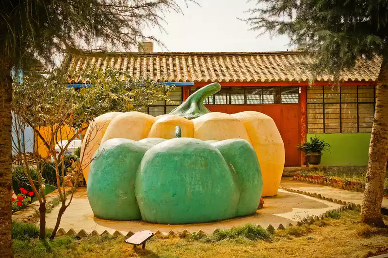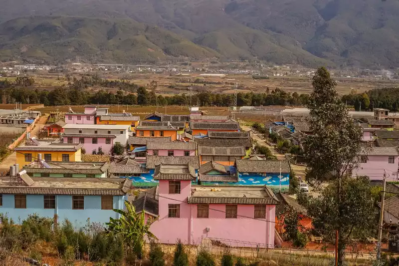 The next day, we visited Nine-Colored Rose Town. It felt like a dreamy town, with houses painted in a variety of colors. It was rose season, and the scenery was stunning.