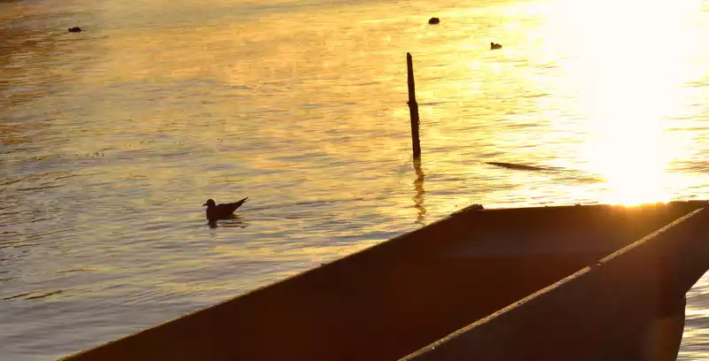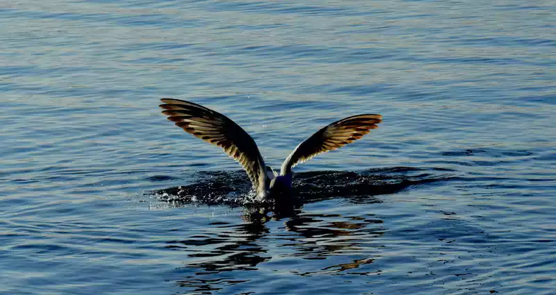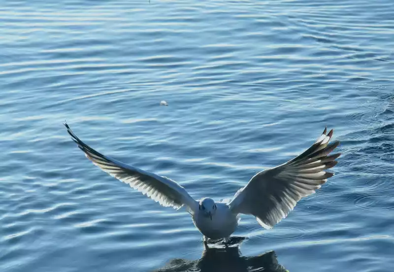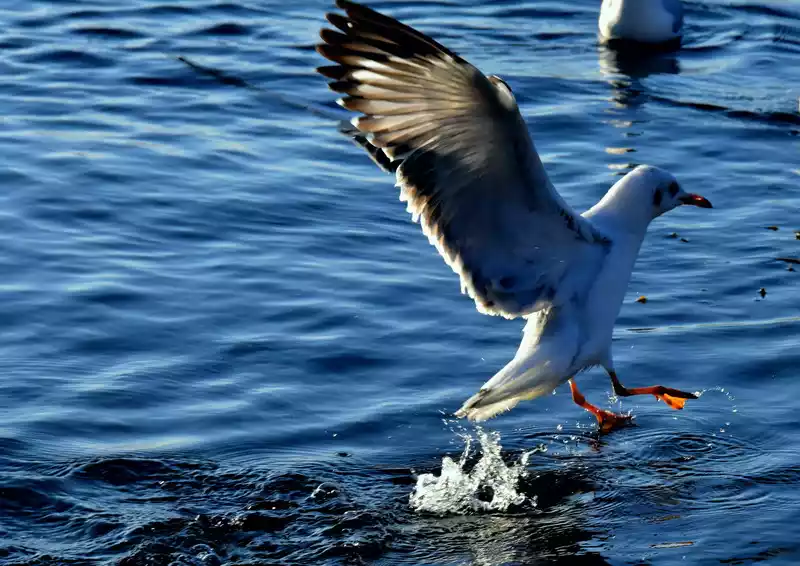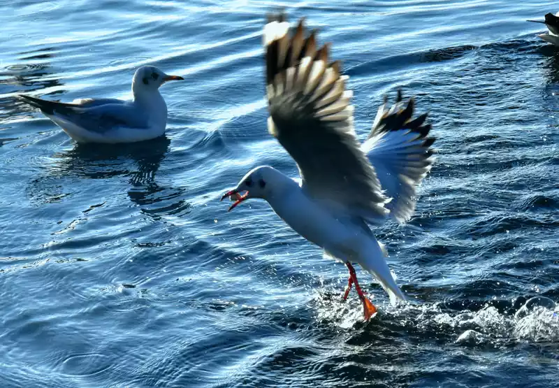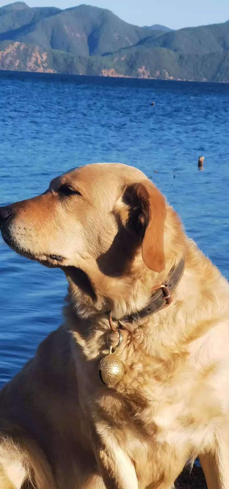 Picking stones with my dog by the lake, he almost jumped into the lake and fed the red-billed gulls with rice candy.