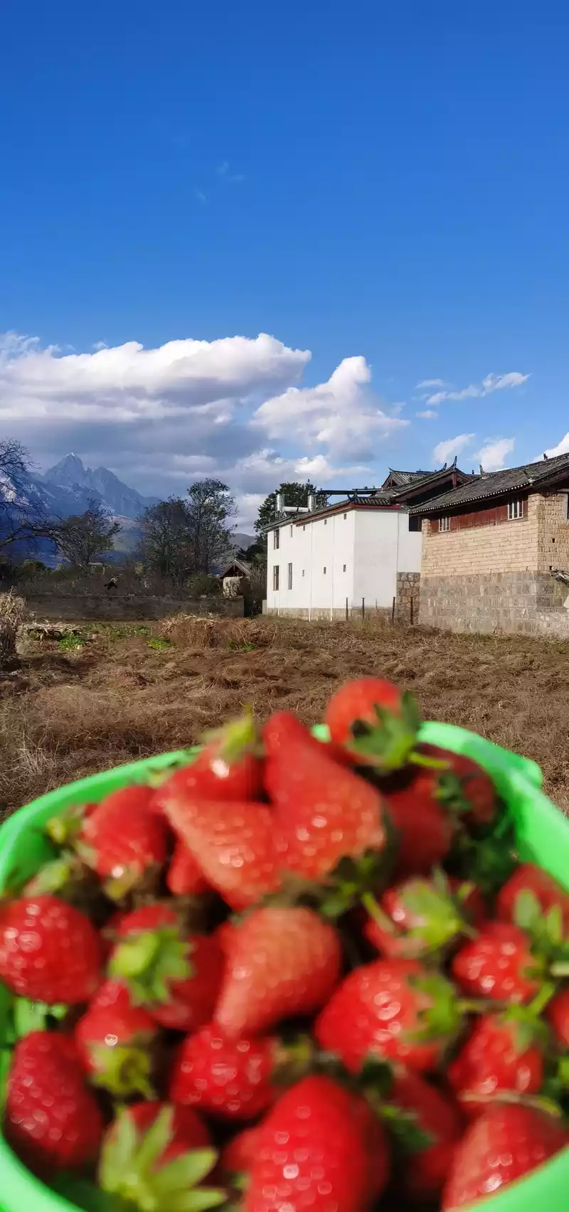 I ordered coffee and dessert and basked in the sun, feeling drowsy. After sitting for a long time, we went to the Aihong Strawberry Farm to pick some strawberries. They were the best strawberries I've ever had—sweet, juicy, tiny, and incredibly delicious.