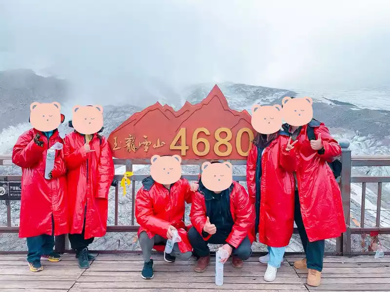 Arriving at the highest point, the 4,680-meter observation deck, everyone was like the frozen camera button had been warmed up and started snapping tourist photos like crazy. You took pictures of me, I took pictures of you, and everyone took pictures of each other, so much so that later on the camera appeared a lot of emoticons, capturing the laughter and joy of this journey. It was summer when we climbed Jade Dragon Snow Mountain. Although there is snow on the top of the mountain all year round, the peak is basically bare. There was thick fog, which was occasionally blown away by the wind to reveal the snowy scenery on the top of the mountain, which attracted everyone to exclaim and take photos. The scene was really interesting and made people laugh.