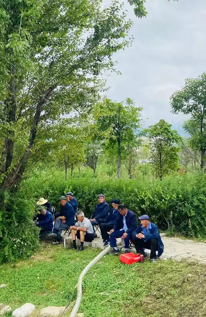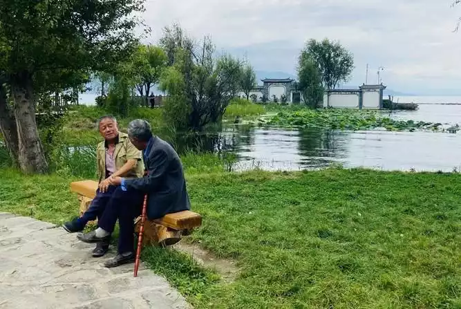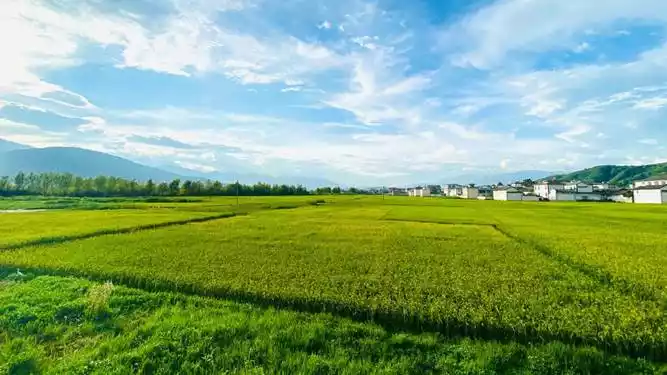 In Xizhou Ancient Town, we saw a beautiful field. It was stunning. We also took some lovely photos along the way. Afterward, we went to a small town next to Xizhou. It was a short drive, about 10 minutes. It's truly a place where locals live. I saw some uncles and grandfathers chatting nearby.