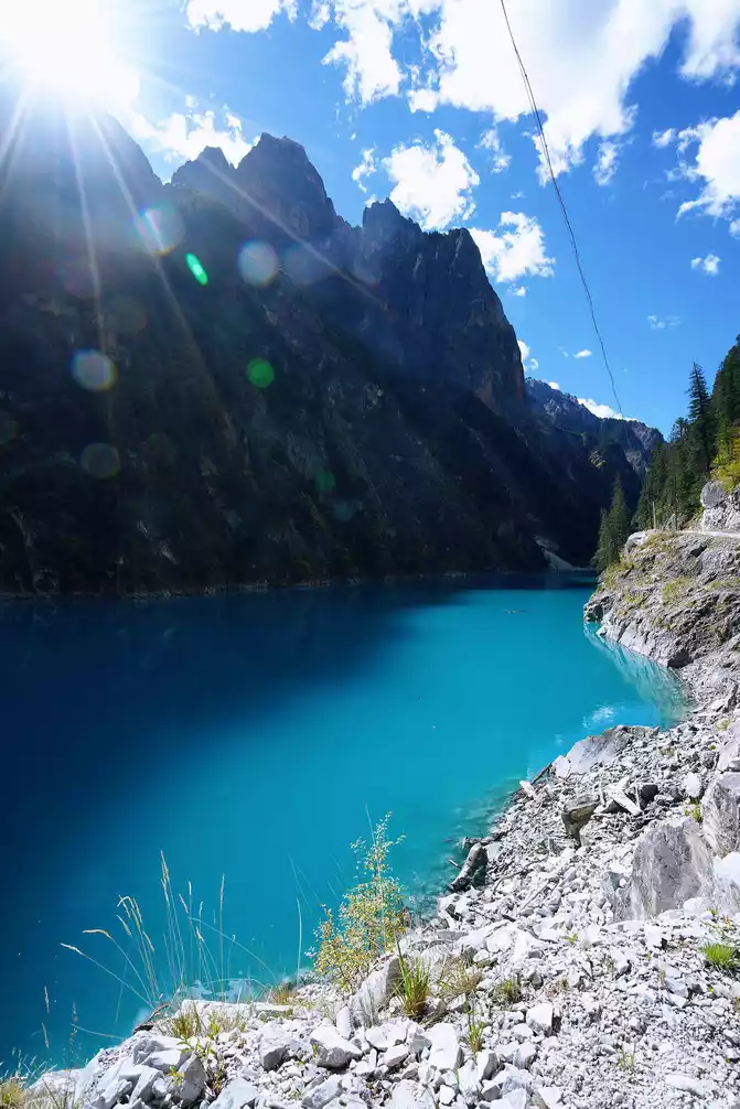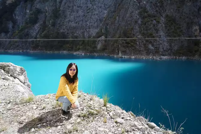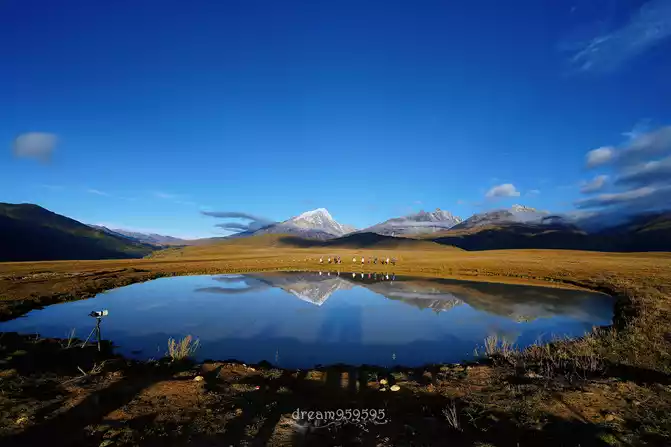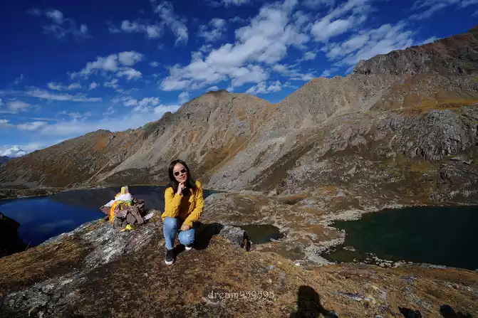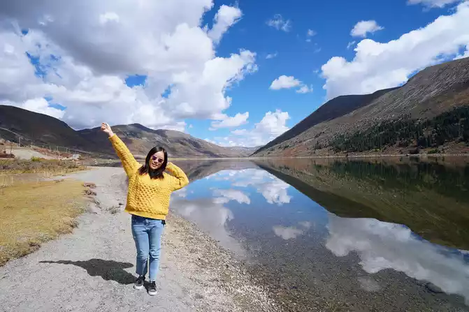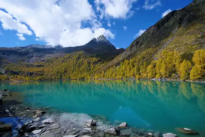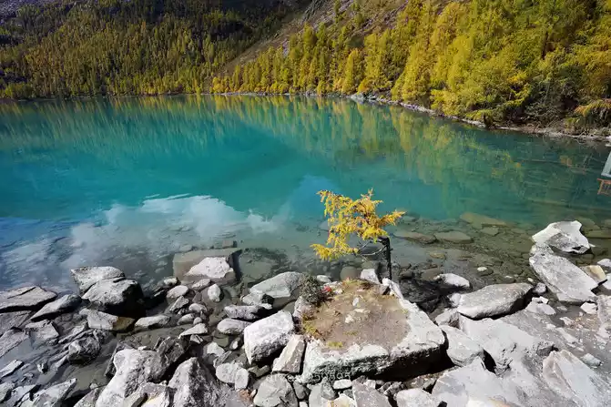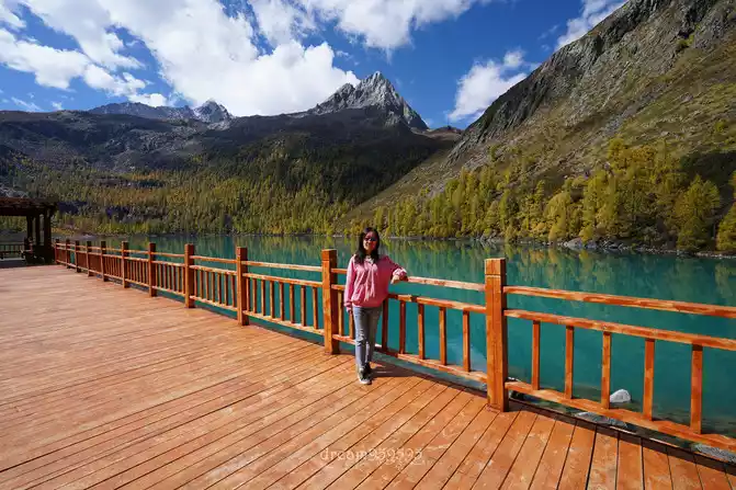 The water color of Jiayilacuo is turquoise, and the autumn colors are charming, which makes you feel relaxed and happy.