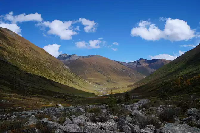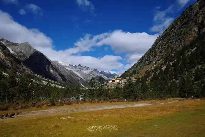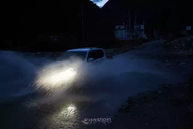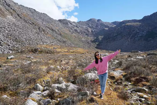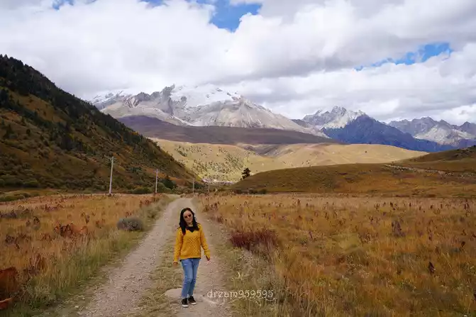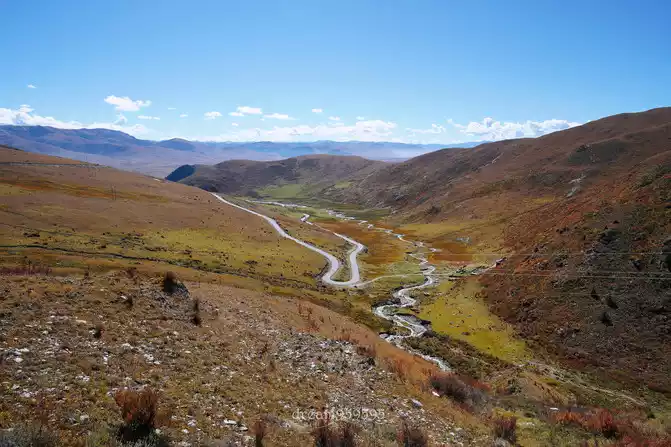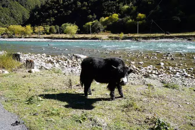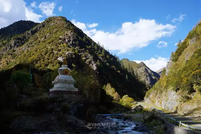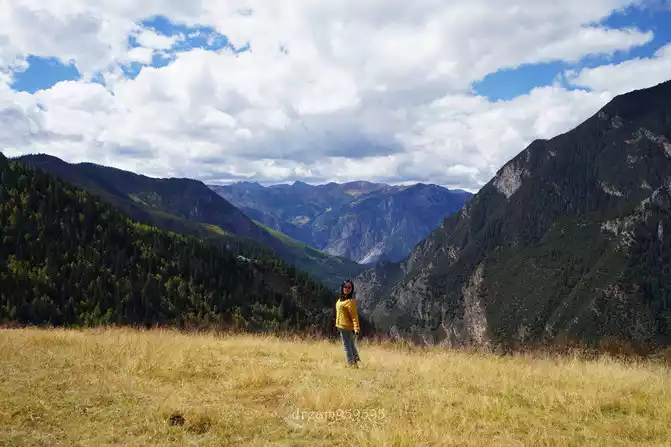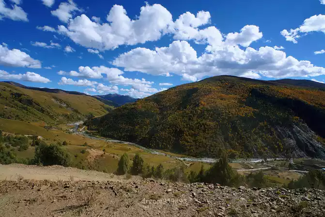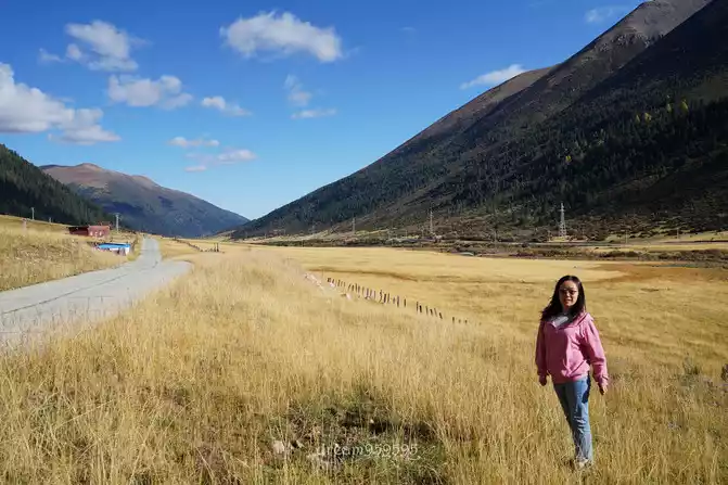 His home is right at the bottom of the viewing platform, about a few minutes' drive away. The family has plenty of standard guest rooms, but they lack electricity or running water. If there are a lot of people, the electricity might only run for two or three hours, and then you'll have to rely on flashlights. No electricity isn't a big deal, but no water means you can't wash. Even worse, the toilet is across the street, and it's a dry toilet. Day 3 10.2 Mana Chajin - Daocheng, Overnight: Jinzhu Town The road from Mana Chajin to Daocheng isn't in great condition, with lots of dust. Driving all the way up the canyon, I felt the difficulty of the Shu Road. On the way to Genyen, I came across a golden forest and could already feel the autumn.
