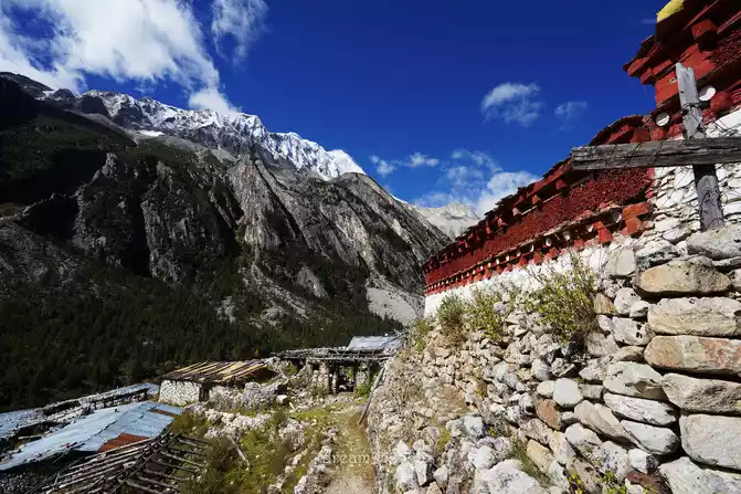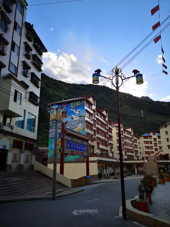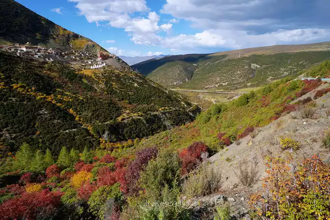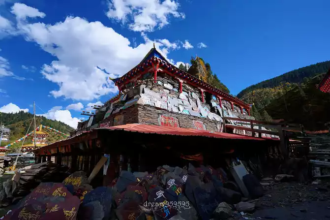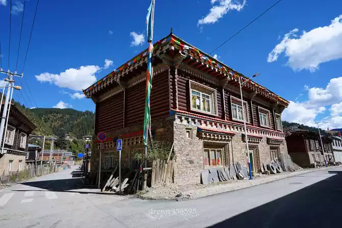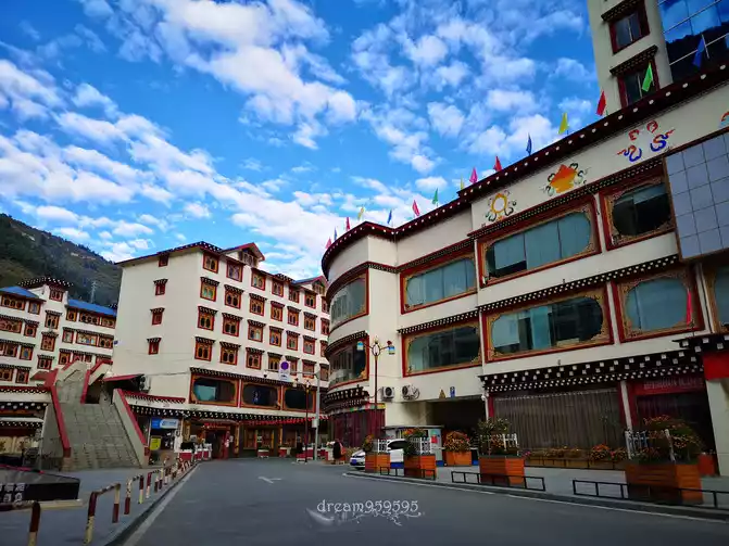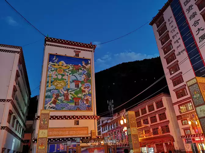A village on the grassland of Larima Town is being built with the help of Taizhou. In five years, it will become a mature attraction with starry sky rooms, grass skiing, etc. It is characterized by the stone slab Tibetan village. There is a large statue of Master Padmasambhava enshrined at the entrance of the village. The mantra of Master Padmasambhava is engraved on the mountain, so the entire village belongs to the Nyingma sect.