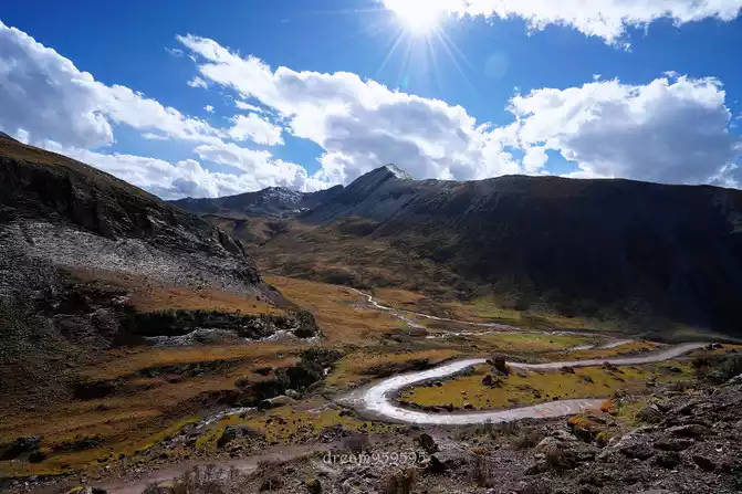 From Genyen to Batang, it's truly a road to heaven. The scenery is stunning. We were the only car on the road, which felt like a dream. The pass is over 4,900 meters high, and getting out of the car to take a photo felt a bit dizzy.