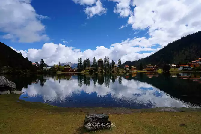 The reflection of Cokha Lake is very beautiful, suitable for a picnic and afternoon tea by the lake. The temple is of the Nyingma Red Sect.