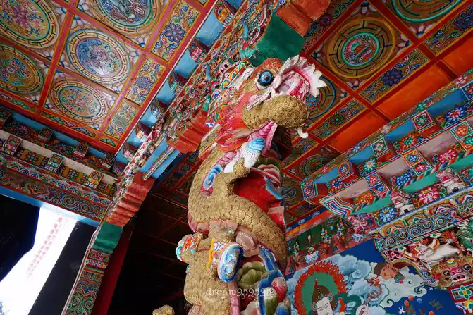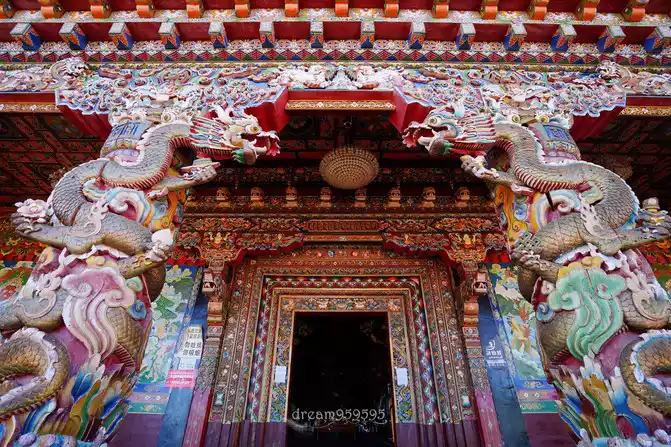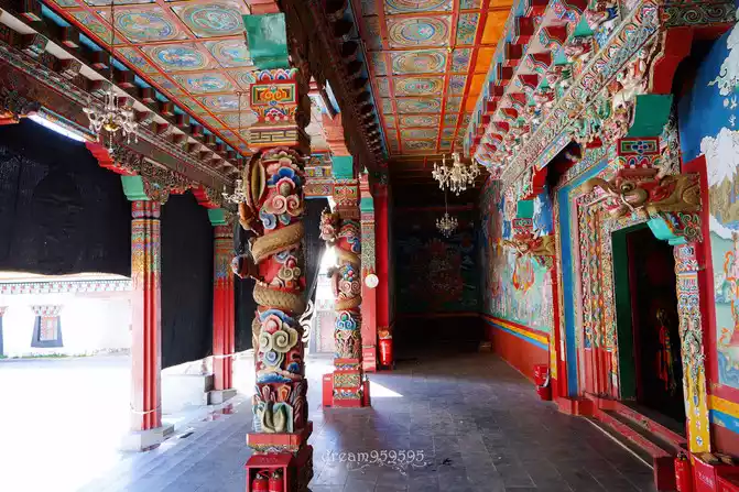 Muli's second-largest temple isn't actually very large, but the architectural carvings are exquisite. The grand hall exudes a sense of ancient simplicity amidst its splendor, a testament to its age.