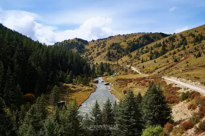 The autumn colors of the mountains, forests, and valleys before me are comparable to those of Kanas in Xinjiang.