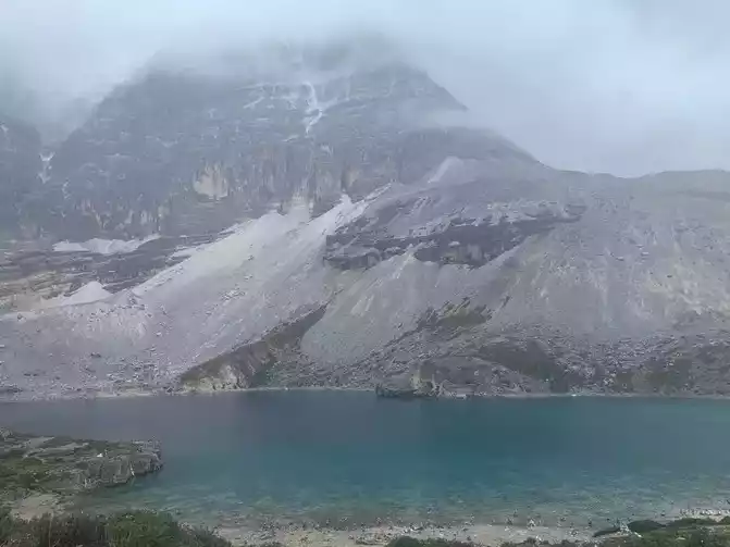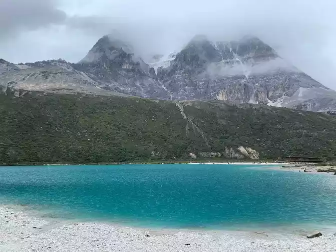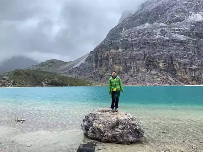 Those less physically fit can take a private horseback ride about three kilometers from Luorong Ranch if they wish to visit both the Milk Lake and the Five-Colored Lake. If you wish to visit both, there are signs at the cabin indicating Milk Lake (1 km) and Five-Colored Lake (740 meters). Choosing to visit Milk Lake first will save you energy. The blue of the Milk Lake, like the purest sky, captivates the eye from the moment you see it. This approximately 0.5-hectare lake, nestled in the heart of the sacred mountain's col, resembles a sapphire gift from heaven to the sacred mountain of Angmaiyong. Its emerald green is surrounded by a mysterious white hue, as smooth and delicate as milk, hence its name. Besides winter, spring, autumn, and summer are all ideal seasons for visiting. The ascent to an altitude of over 4,600 meters is a formidable undertaking. Many, suffering from altitude sickness, struggled with each step, constantly using small handheld oxygen tanks to replenish their oxygen. Tourists, both acquaintances and strangers, encouraged each other along the way. Upon seeing the tranquil beauty of the Milk Lake, everyone was overcome with joy, their previous hardships forgotten. Visitors build Mani piles in the stream beside the Milk Lake, or pick up white stones on the roadside and place their names on them, hoping that they can continue to accompany the mountains and lakes in the days after they are gone. People stroll in the Milk Lake, walking clockwise like their Tibetan compatriots. That is the most beautiful blessing people give to the mountains and lakes!