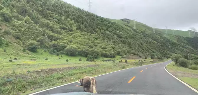 The road back to the hotel was filled with yaks. They were very conscientious when crossing the road, waiting by the roadside until they saw that there were fewer cars on the road, then jumping off the curb and galloping past.