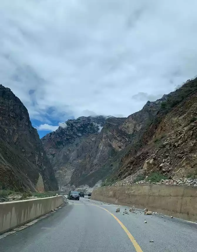 It's still 94 kilometers to Shangri-La City. Be extremely careful on the road, as there are rockfalls.