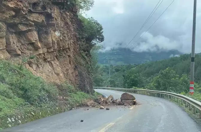 Moderate rain, so we didn't have to drive through the rockfall area today, driving 152 kilometers on Highway G0613.