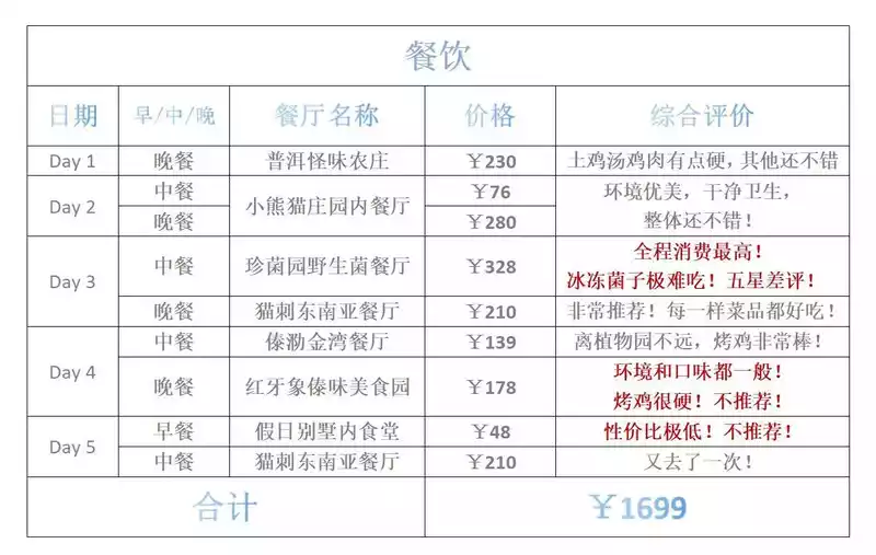Food and beverages totaled 1,699 yuan, or about 70 yuan per meal per person.