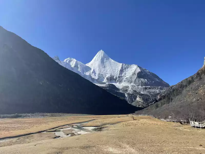 In winter, the Shen Waterfall is mostly frozen over, making it less majestic than one might imagine. But in the hearts of Tibetans, it's the sacred water bestowed by the Meili Mountains. If the journey along the way was a feast for the eyes, this place was a feast for the soul. There was a small incident here: just as I was approaching the Shen Waterfall to receive the water, an avalanche occurred on the nearby mountain. As everyone screamed, I could only say one word: well worth the trip.
