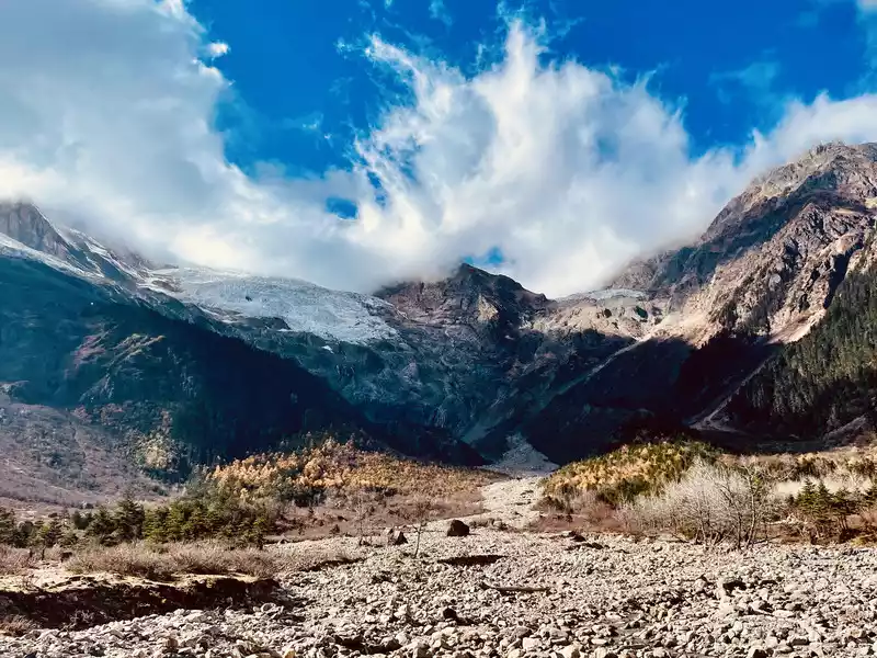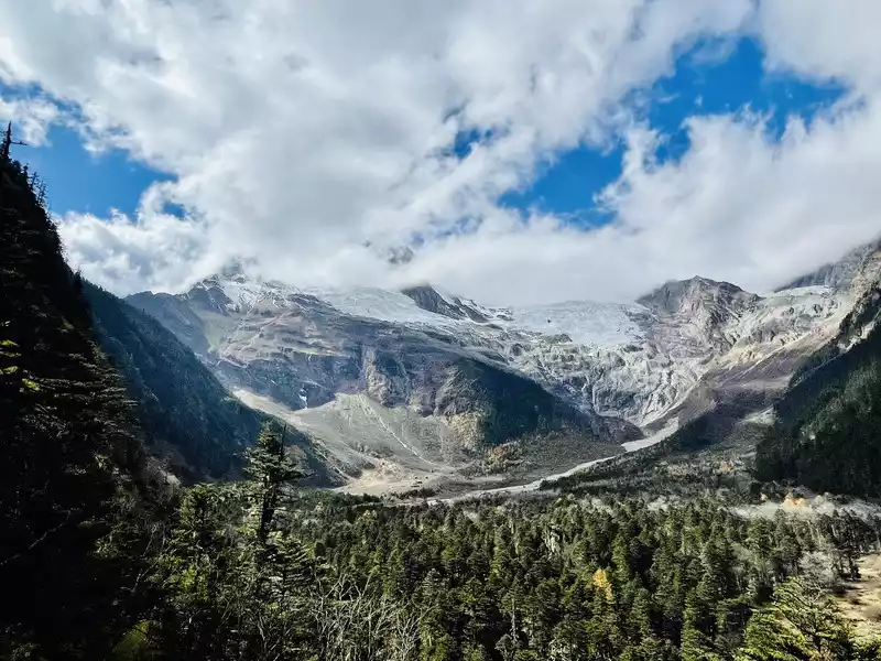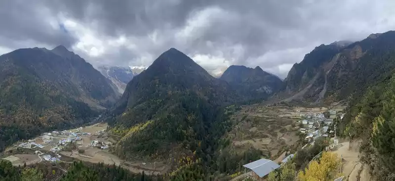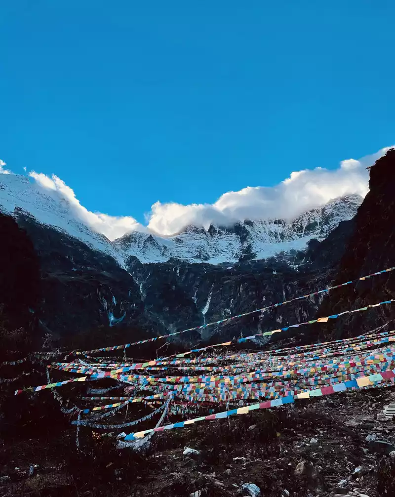 After yesterday's 7-hour round-trip hike, my energy was practically at its limit. I woke up at 9 a.m., making it impossible to go to Shenhu Lake at that hour (now thinking back, it's a good thing I didn't go. The equipment I brought and the guide I'd made didn't support a purely off-piste hike. It's recommended to go with a partner who brings professional equipment and set off before 7 a.m., at an altitude of 4,700 meters, with an ascent of 1,700 meters). So we packed our bags and headed for Shangyubeng, where we could see the entire Yubeng along the way.We arrived at Xiaonong Base Camp at 3:30 PM. I was a bit reluctant to give up after the climb. The return trip up to the glacier lake would take another 1.5 hours, and the descent would probably take until 8 PM (friendly Tibetans and fellow travelers told me we had to be down by 4 PM no matter where we were). Since we only planned to reach Base Camp, we stuck to the plan. A word of caution: the only way to the glacier lake is by mountain trail (dirt), a mule-beaten path. If you're not well-equipped, the descent can be dangerous and very damaging to your knees and ankles. I ruined a pair of shoes.
