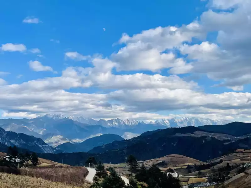 Today's itinerary was to leave Yubeng and return to Lijiang via the West Scenic Route, connecting to the G214. Compared to the previous trip, the journey was much simpler, with all roads paved. We passed Baima Snow Mountain, Haba Snow Mountain, Jade Dragon Snow Mountain, and Shangri-La City. The scenery along the way is also highly recommended; it's breathtaking.