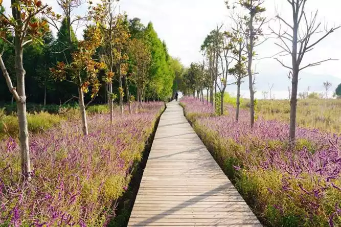 In Wanghai Park, traces of spring are everywhere. The water shimmers, and distant mountains guard the lake. The sky is filled with large white clouds. Listen to the wind and watch the leaves sway. I think this is probably the Kunming I most want to experience.