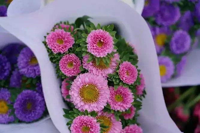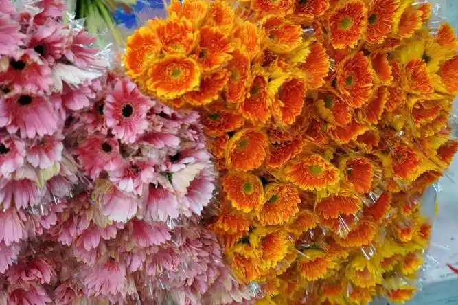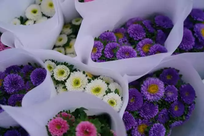 We went to the flower market. They said it was bustling with activity every day. We even bought some flowers. How cheap are they? Sunflowers were only 15 yuan, and the daisies we bought were only 9 yuan. This is nothing like the price I pay for flowers at home.