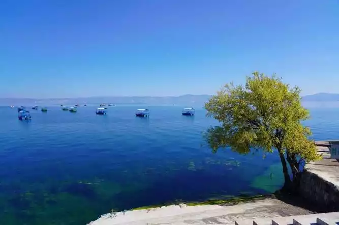 The trees here are lush and green, and the boats in the distance are scattered everywhere, like stars on the sea.