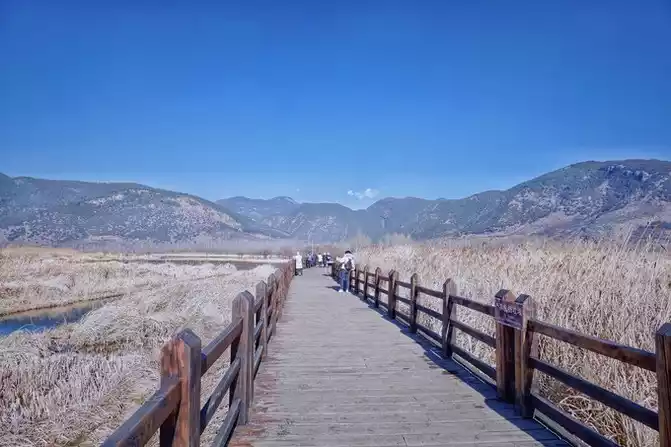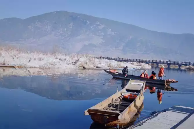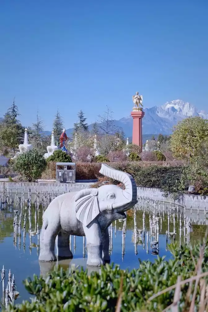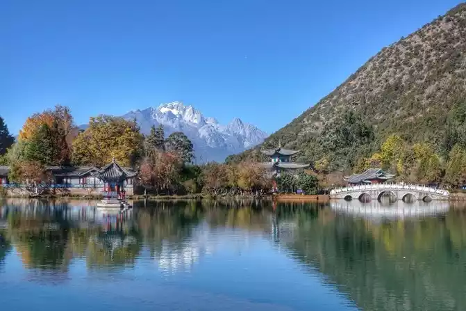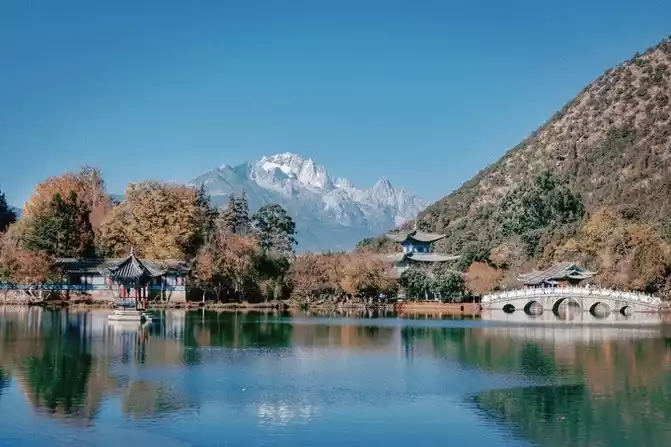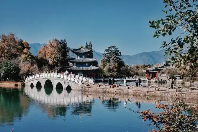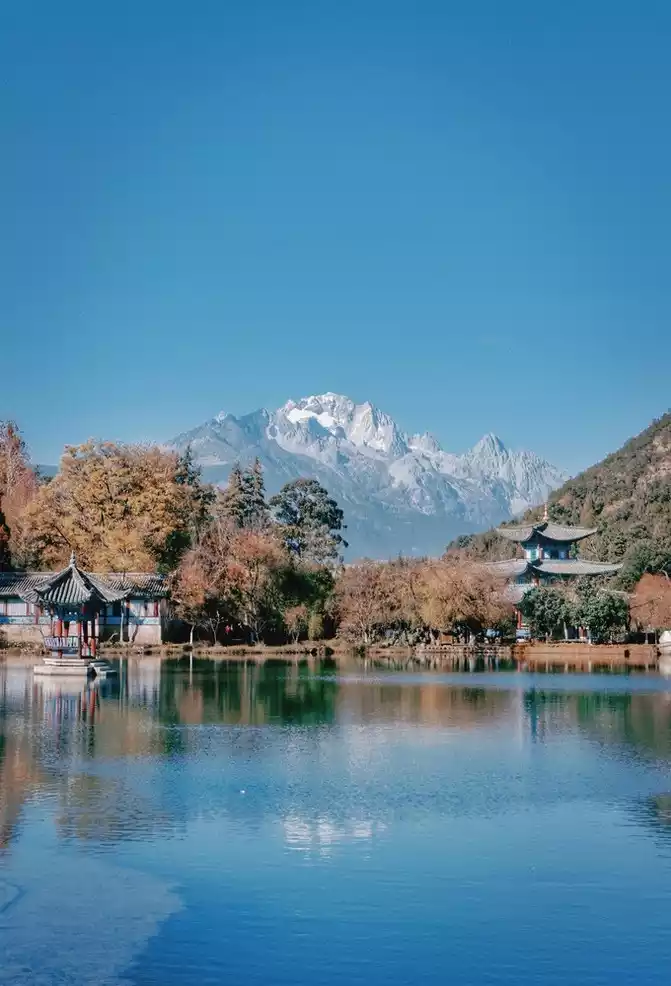 a latent dragon in the sky, a soaring dragon on the ground; jade water stretches for half a mile, its body in black jade, its spirit in azure jade." A couplet vividly captures the scenery of Black Dragon Pond. A clear, azure spring, shimmering like a gem in the sunlight, reveals its delicate texture. The pool reflects the pavilions and mountain peaks, a scene at every step, a mirrored scene, a painting in the water. In the distance lies Jade Dragon Snow Mountain. On a clear, cloudless winter day, the mountain's sharp outline is reflected in the pool, while the snow-capped peaks stretch out in a vast expanse. Tickets: Temporarily free, require advance reservation through the official account
