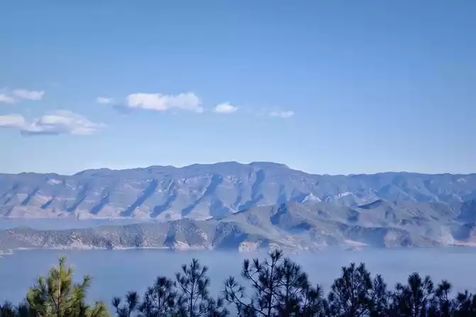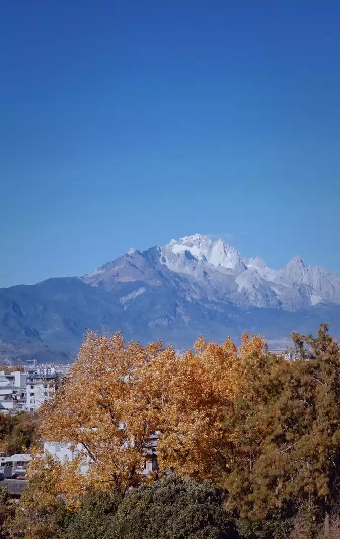 Climbing Snake Mountain, one can gaze upon the majestic Jade Dragon Snow Mountain in the distance, and the magnificent landscape of Lijiang's alpine snow-capped mountains and rivers come alive.