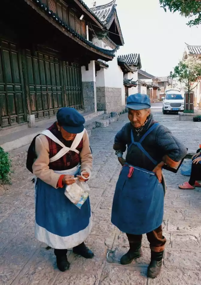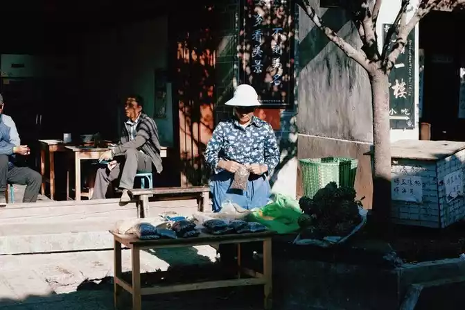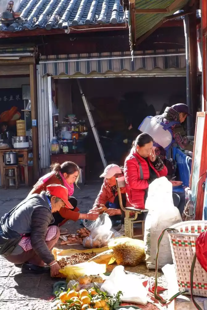 People often mistake Dayan Ancient Town for Lijiang Old Town, but they don’t know where the true origin of Lijiang Ancient Town lies. Ten kilometers north of Lijiang City lies a Naxi ancient town, remarkably preserved in its original charm. It is not only a significant birthplace of Naxi culture, but also the origin of Lijiang's ancient town. Baisha Ancient Town, nestled at the foot of Jade Dragon Mountain, traces its history back a thousand years to the Tang Dynasty. The Mu clan regime of Lijiang originated here, establishing Baisha Subdistrict, which became the political, cultural, and commercial center of the Naxi people. Harnessing the springs of Jade Dragon Snow Mountain to bring water to the village improved its living environment and boosted Baisha's commercial development. At the time, the town's handicraft trade was already flourishing, primarily focusing on coppersmithing and textile embroidery. These crafts gradually disappeared after the late Liberation period. Local elders, dressed in traditional Naxi attire, squat beneath the city walls in the early morning sun to sell fresh vegetables.