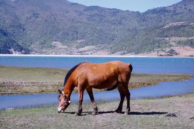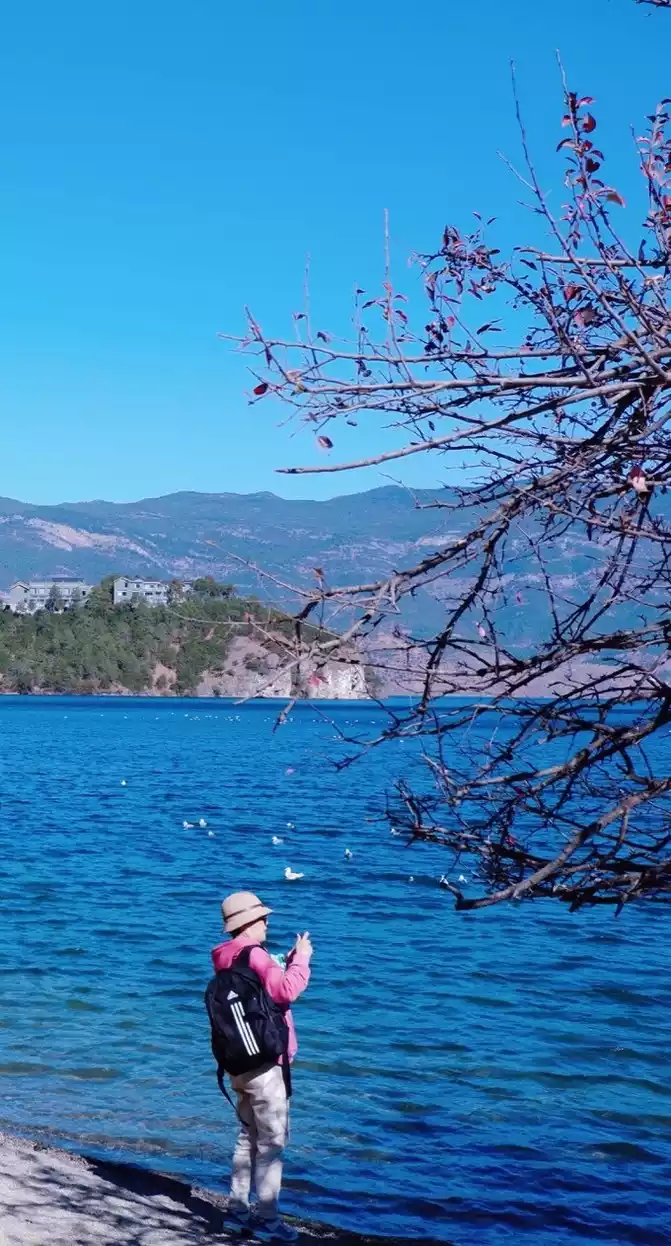 After a bumpy four-hour journey from Lijiang, we finally arrived at Lugu Lake, passing through the 18 bends of the Jinsha River. Lugu Lake boasts five islands, four peninsulas, and 14 bays. Gemu Mountain, towering 3,754 meters above sea level, is the highest peak among the mountains surrounding the lake. Lugu Lake National Scenic Area