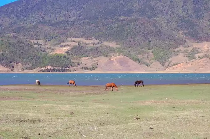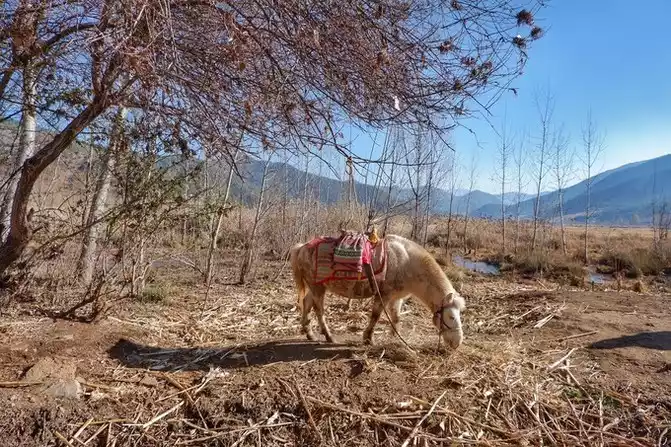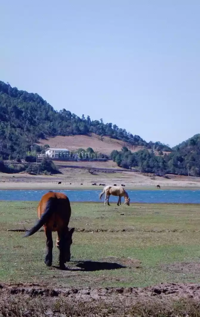 Wenhai Village is located in Baisha Township, Yulong County, Lijiang City, Yunnan Province, across the mountain from Baisha Ancient Town. There are only about 200 households and a population of less than 1,000 living on a vast land of more than 3,300 hectares. The road to Wenhai Village winds through the mountains. Before the construction of the winding highway in 2012, there was no direct access to the village, leaving it a hidden and unspoiled paradise. Only in recent years has it been gradually discovered by hikers and drivers. After climbing over a mountain, a 30-minute drive brings you to Wenhai Village. As the winding road descends, you can vaguely see a vast expanse of blue ocean and gently green meadows. The village is concentrated on the flat land near the lake. Land resources here are limited, so the locals rely on animal husbandry for their livelihood, with herds of cattle and horses grazing on the grasslands. The village is composed of small, hand-built farmhouses. A clear lake nourishes the few households, and the villagers are close friends and family, living a leisurely life from sunrise to sunset.
