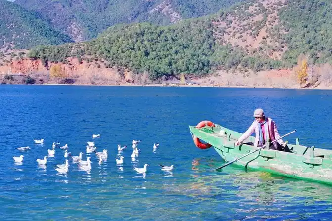 Nowadays, it has become a tourist attraction for boating around Lugu Lake.