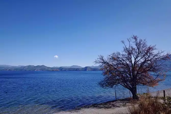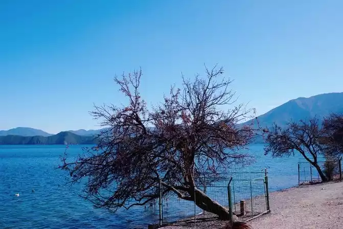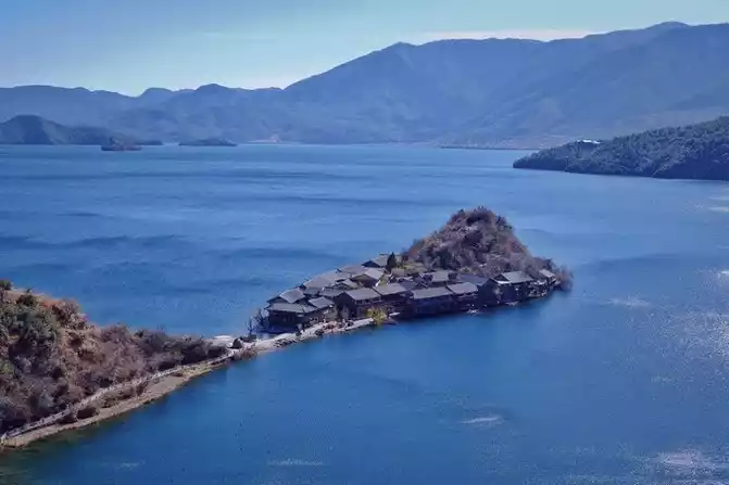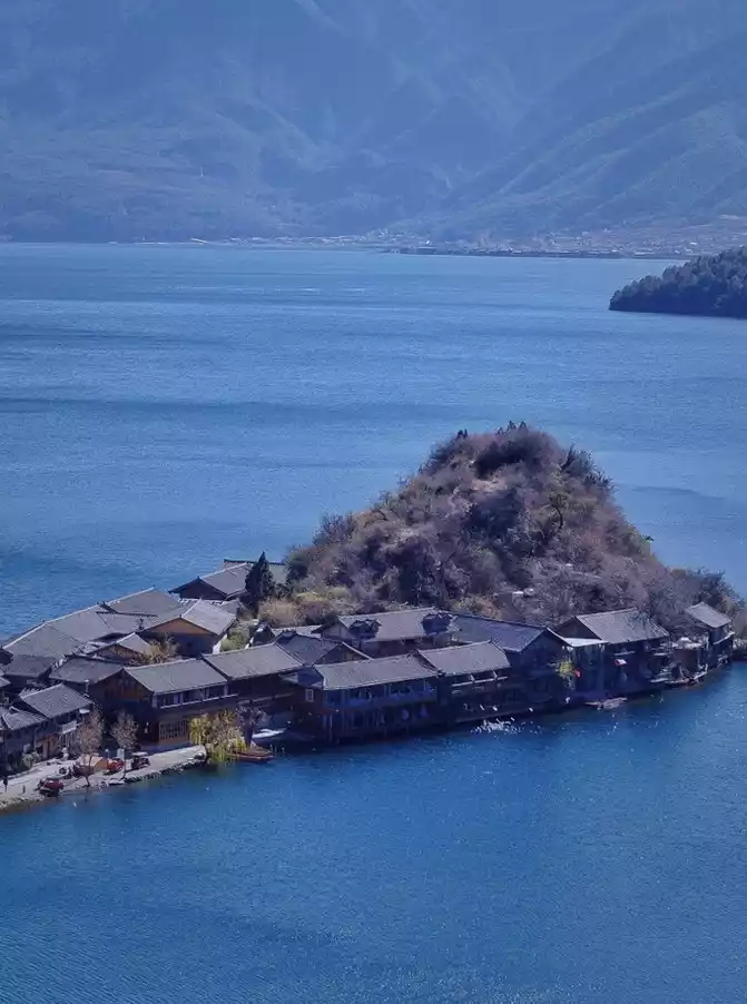 The island is surrounded by water on three sides, east, south and west, and faces land in the north. The whole island is like the fairy island of Penglai, sleeping in the cradle of Lugu Lake.