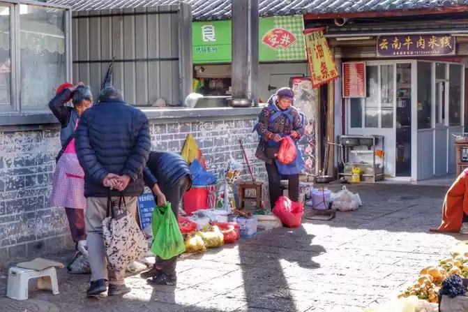 A few small stalls are selling steaming hot breakfasts, and the atmosphere of Naxi life is everywhere...