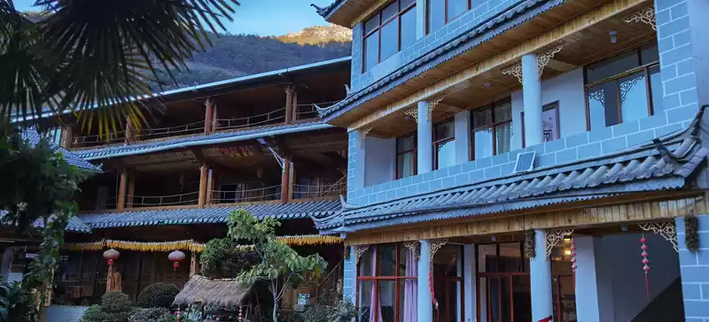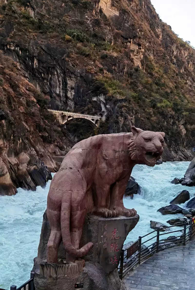 The Tiger Leaping Gorge is known for its thrills, and it is divided into three sections: upper tiger jumping, middle tiger jumping and lower tiger jumping from the entrance to the exit. The snow peaks on both sides of the river are more than 5,000 meters above sea level, and the steep wall drop from the top of the mountain to the river is about 3,000 meters. Standing on the mountainside cannot fully appreciate the stormy waves, so watching the Tiger Leaping Gorge go down to the river. Shanghu Leap is a relatively well-developed viewing area in the country, with a visiting plank road and an observation deck. In recent years, escalators have also been installed, which is indeed convenient for the elderly like us. Otherwise, you will have to go up and down more than 2,000 steps. Generally, tour groups visit Tiger Leaping Gorge and stop at Tiger Leaping. When we arrived, it was winter, and the Jinsha River was in the dry season. This has shocked us.I heard from the staff that in the summer and autumn water seasons, the splashes of the river water hitting the boulders are like rain, and tourists have to wear raincoats and umbrellas when walking on the plank road, otherwise they will be soaked. Tickets for visiting Tiger Leaping Gorge are 90 yuan (half price for the elderly), and elevator round trip is 70 yuan.