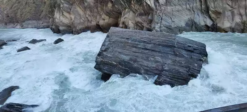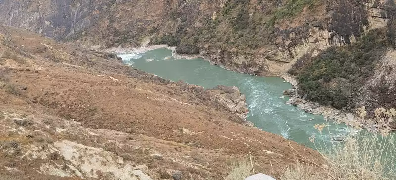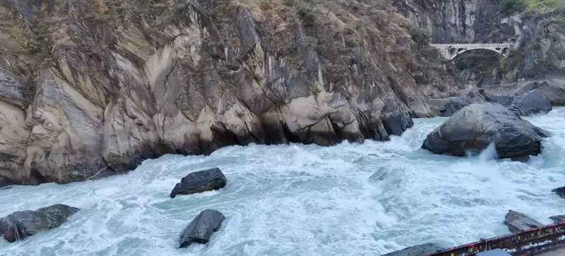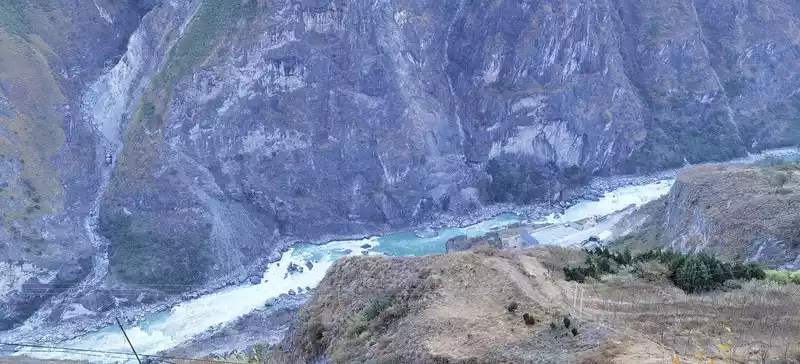 The Jinsha River originates from the main peak of Tanggula Mountain in Qinghai, and has been flowing south at first, and suddenly turned a 120-degree angle and turned northeast in Shigu Town, Yulong County, about 60 kilometers north of Lijiang. Arriving at Yibin City, Sichuan, the Min River was renamed the Yangtze River after it merged. After the Jinsha River turned this bend, it rushed out of a "way of life" in the middle of the gap between the Jade Dragon Snow Mountain in the east and the Haba Snow Mountain in the west.