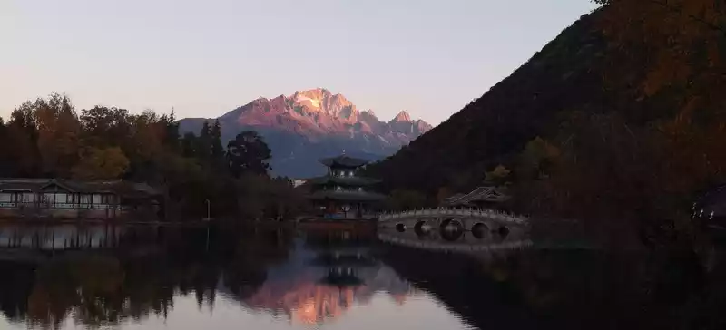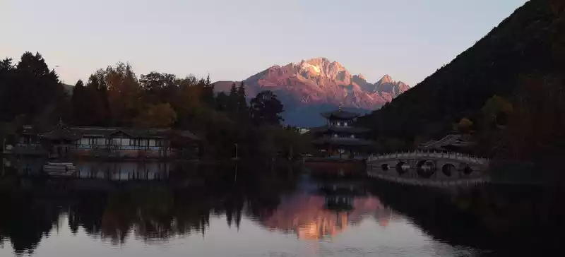 When it comes to the ancient city of Lijiang, there is really nothing to write about, it is too commercial. The ancient city is like an outlet mall tiled there, either a street of bars, a street of restaurants, and then a street of tourist goods. The only place in Lijiang that left an impression on me was Heilongtan Park. Early morning sunrise near the Suocui Bridge in the park is the best place to take pictures of the reflection of the Jade Dragon Snow Mountain. In the foreground, there is a five-hole bridge in the lake and the Naxi-style Deyue Tower as a backdrop, coupled with the reflection of the Jade Dragon Snow Mountain, which is quite beautiful. I also tell you a little secret, this park does not require tickets before 10 a.m., and I will not tell him if I am not a China-TravelNote customer.