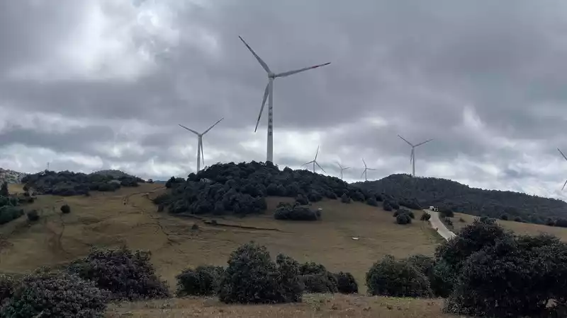 The wind was strong on the top of the mountain, and I could hear the clear tinkling of cowbells.