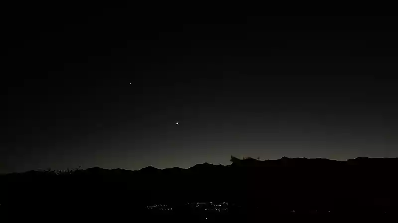 In November, Dali boasts a brilliant blue sky every day, sometimes cloudy, sometimes cloudless, with an arc-shaped moon camouflaged among the white clouds.