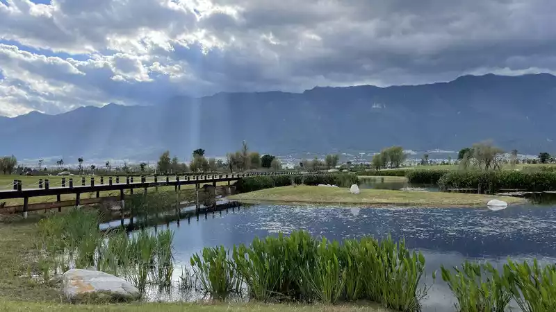 Facing Erhai Lake and backed by Cangshan Mountain, the scenery is picturesque and truly pleasant.