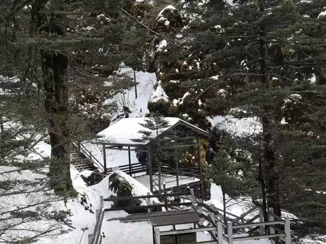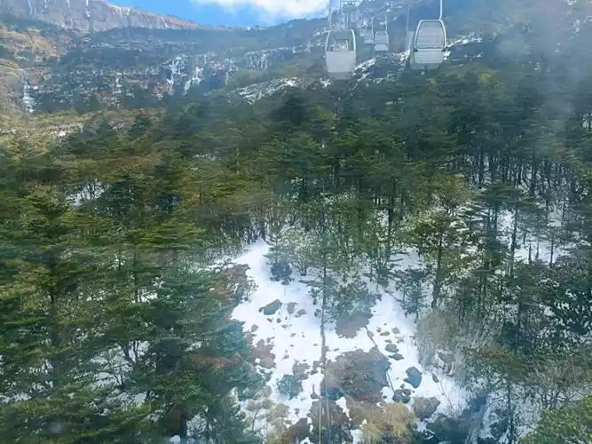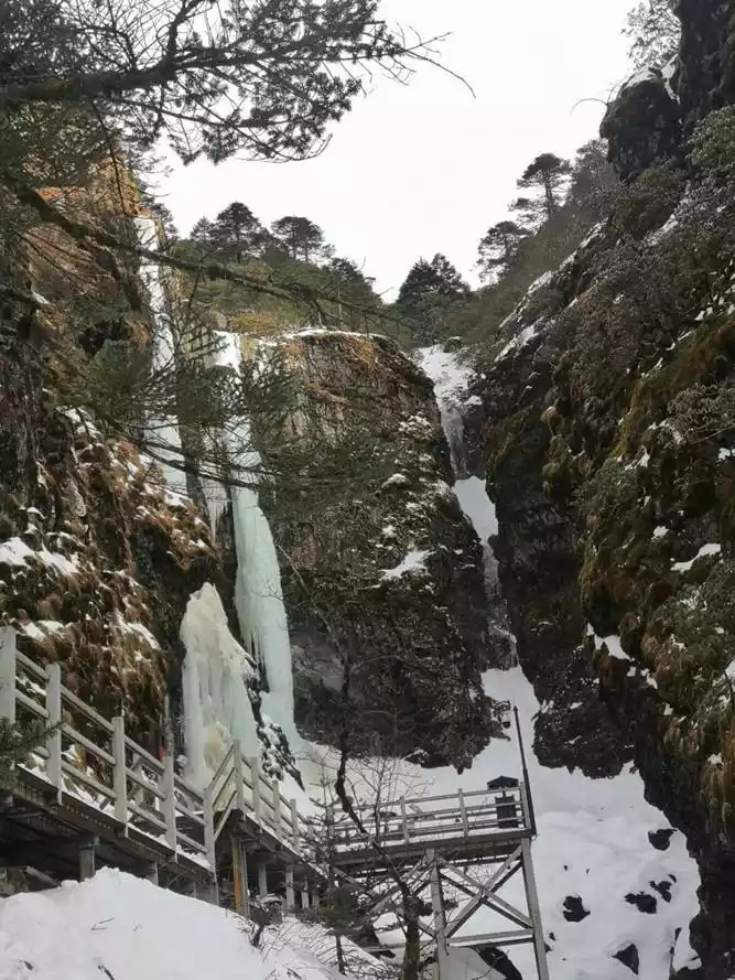 Note: You have to take the cable car to reach Jiaozi Snow Mountain. There are probably hiking options, but given the cold weather and the steepness of the mountain, I strongly recommend taking the cable car. There is still some distance to walk after getting off the cable car. There are two options: one that goes directly to the top of the cable car, and the other that goes to the icefall. We chose the route that went to the top of the cable car and then to the icefall. The climb to the top of the cable car is not easy, and it took us over two hours. So, don't assume that everything will be fine after taking the cable car. We stayed for a long time at a viewing platform near Jingguai Pond, where we could see a particularly beautiful world. A thick layer of ice formed on the water, and the distant sky was also foggy, as if a fairy could suddenly appear from this fairyland on earth.