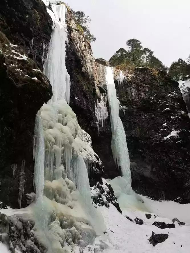 Beautiful snowflakes could be seen on the distant mountain peaks. It must be said that nature, the creator, has indeed created a variety of scenery in the world. What shocked me the most was the waterfall. I have seen cascading waterfalls before, but this is the first time I have seen such a beautiful icefall. If I hadn't known it was winter, I might have thought the waterfall had frozen in time. I'm curious what the last frozen drop of water looks like. Seeing it is truly unforgettable.