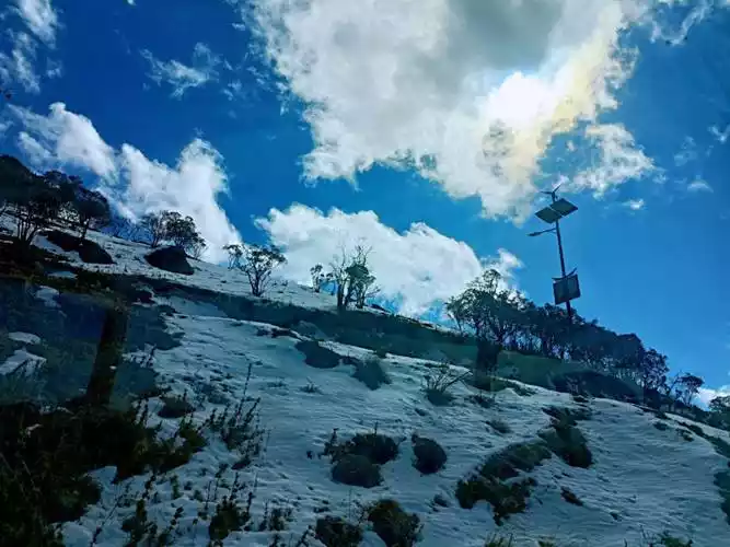 So, I decided to start this snow mountain trip with my friends. Jiaozi Snow Mountain is absolutely stunning this season, blanketed in silver and offering a breathtaking view. This kind of scenery is so captivating you can feel its beauty even before you even enter the area. The sky looks incredibly blue and high, captivating.